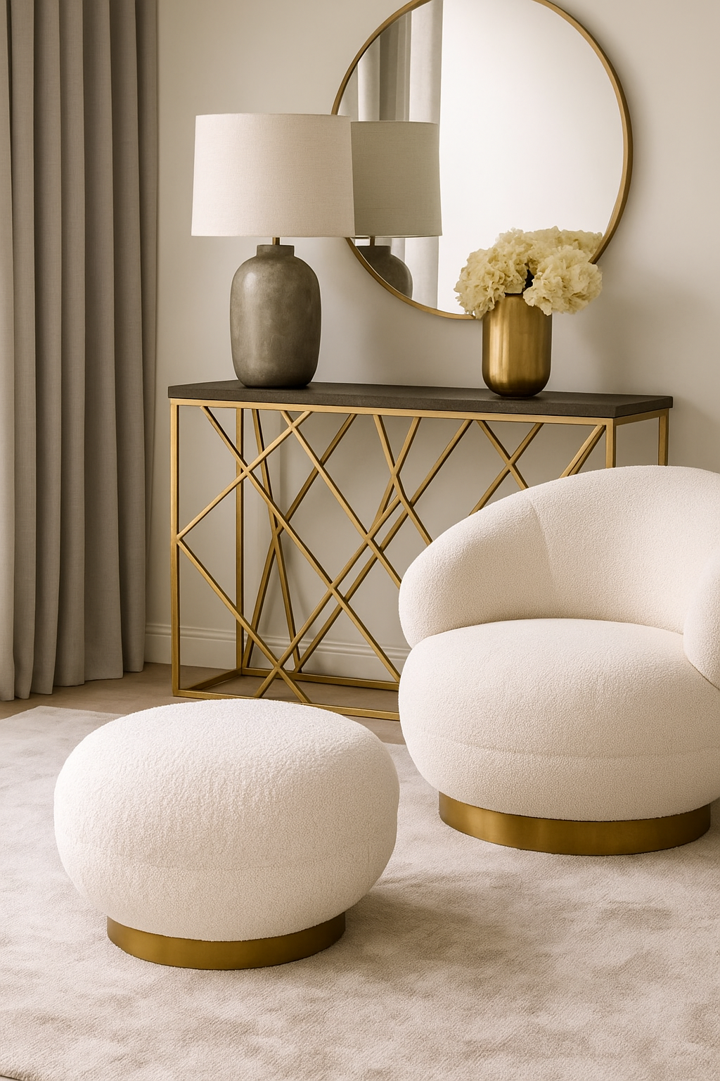 The Jace Pouf by Richmond Interiors combines modern design with luxurious comfort. Featuring a soft, rounded silhouette upholstered in a textured off-white fabric, it adds warmth and elegance to any living space. Perfect as a footrest, extra seat, or decorative accent, this pouf blends seamlessly into contemporary and minimalist interiors. The Richmond Interiors Jace Pouf is the ideal choice for those seeking sophisticated style and versatility in home décor.