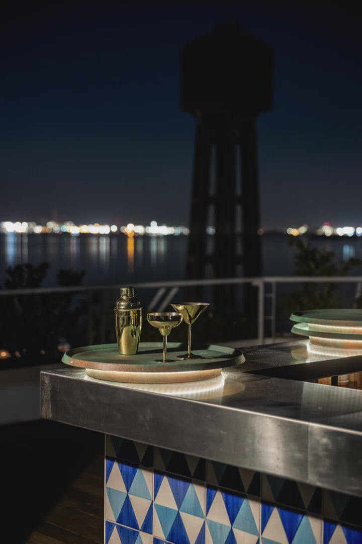 The LED light strip which lasts up to six hours is located under the tray gives an even and soft illumination to the tray and creates a fascinating atmosphere of relaxation and pleasure.